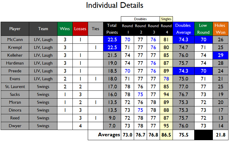 - McCann & Krempl tied for MVP with 22.5 points (out of 33 total available points).