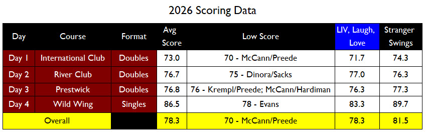 - A return of singles-ish competition on day 4 (shared drive). (Shingles?)
