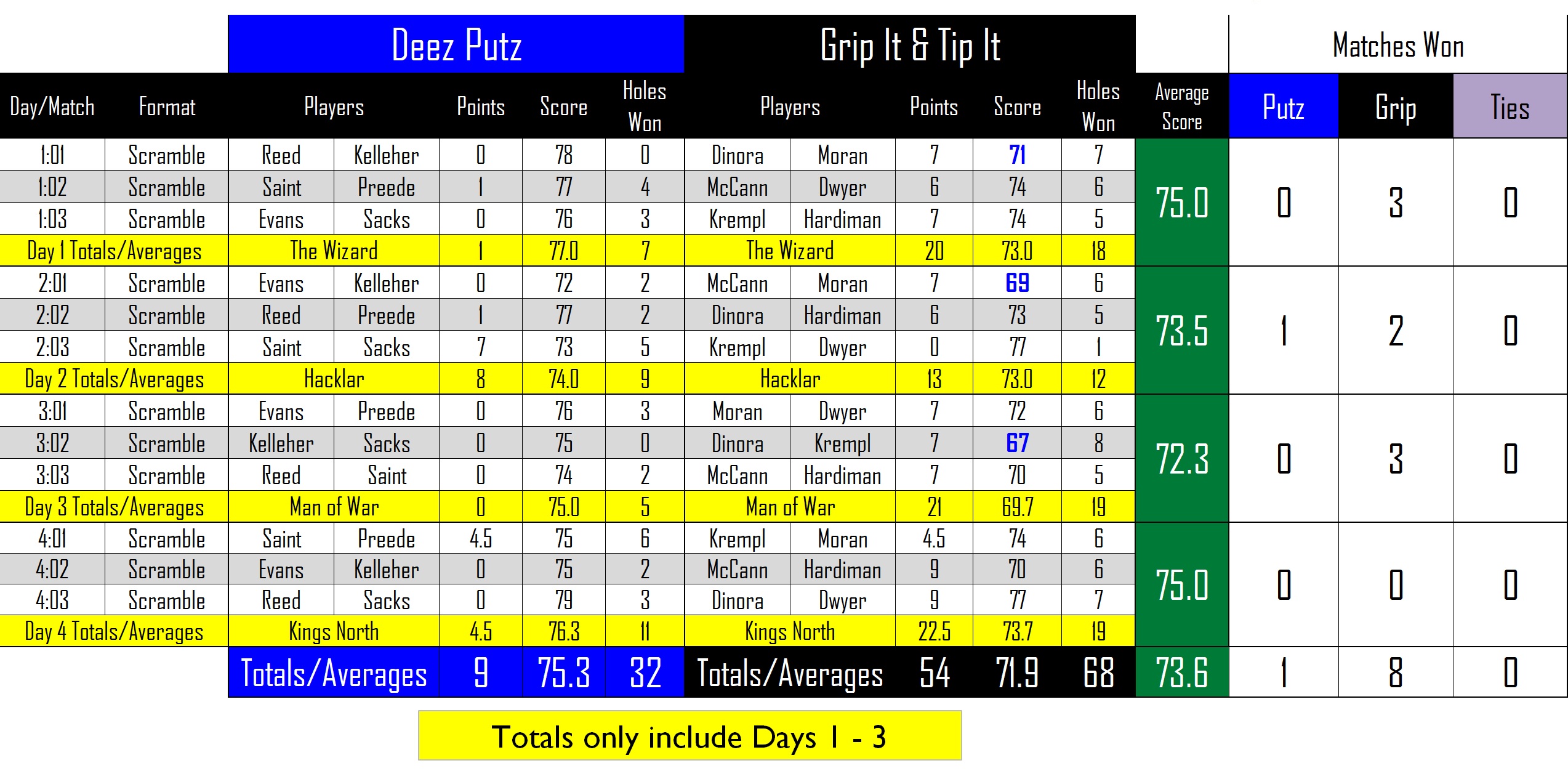 Team Grip It & Tip It Trounces Deez Putts in Biggest Blowout Ever
