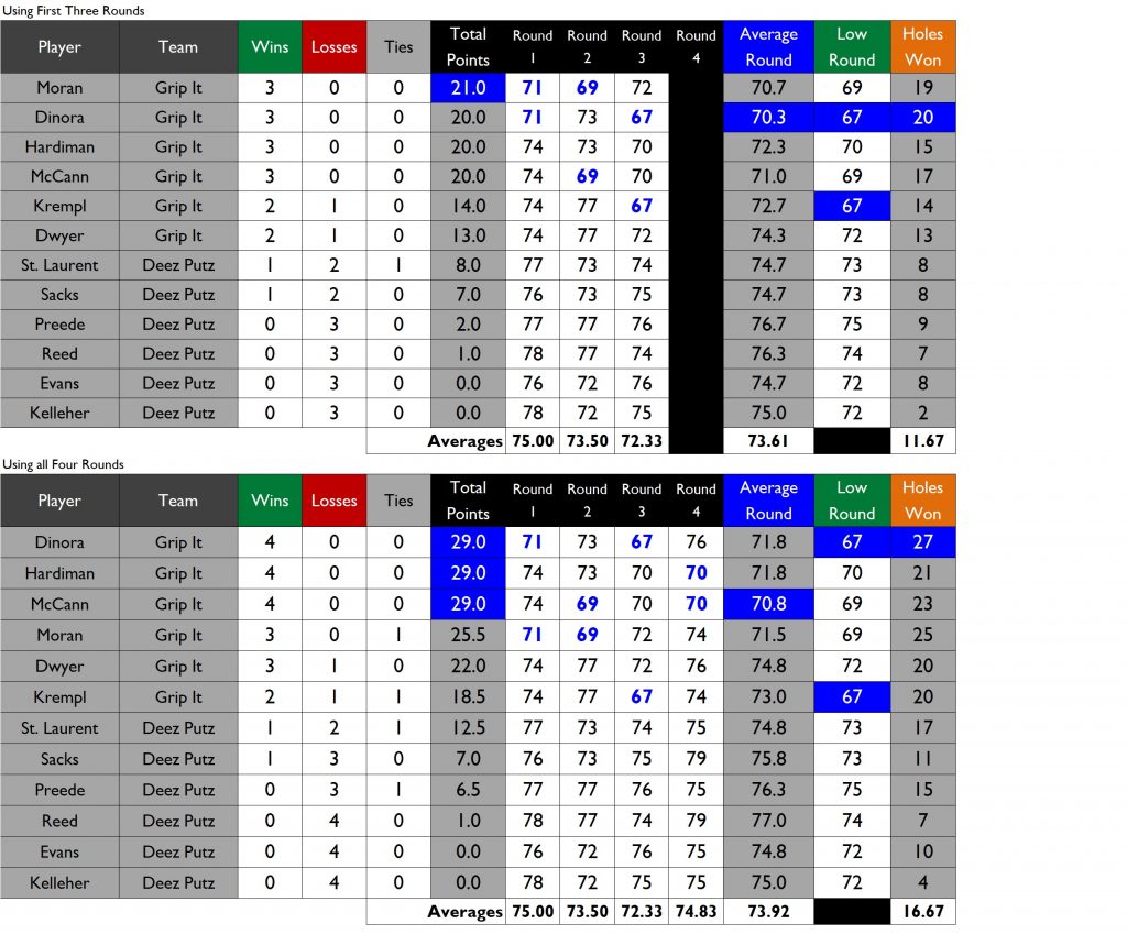 - McCann & Moran became the first players with a 4-day scoring average under par. Tim holds the record now with an average score of -1.